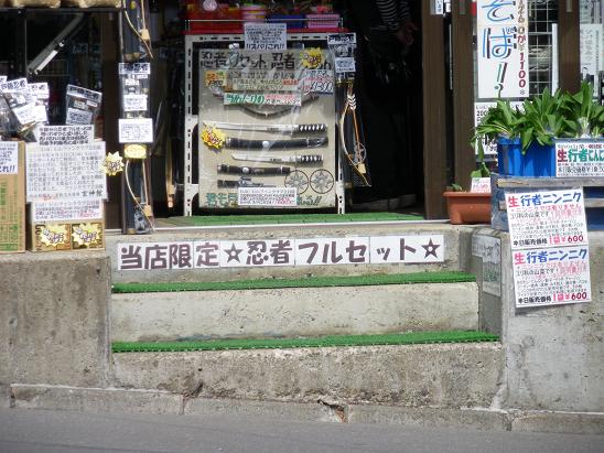 ヒマなので辺りを見渡すと「チビッ子忍者村指定店」の看板が。へぇー指定されちゃってるんだ、チビッ子忍者村に。