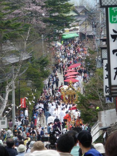 その後は中社付近で昼食を取り、その後、渡御の儀で神輿を戴いた行列が通るというので沿道で待つことに。
