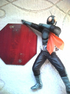 思い起こせば昨年の夏、M氏から貰ったプライズ商品を改造・リペイントした旧1号が台座に対して45度程度の傾斜角で立ちながら変身ポーズを取っていたのを見て驚愕。スキーのジャンプかと思った。