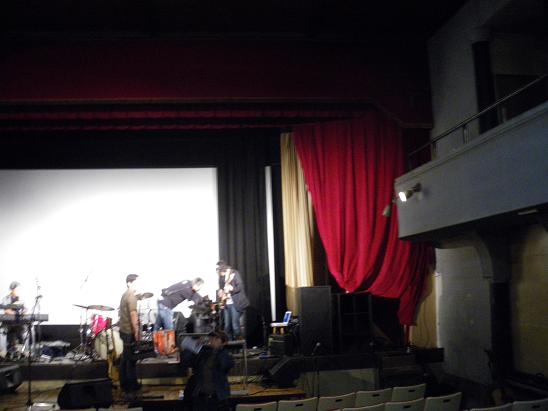 本日は夕方よりライブがあるため、バンドの方々がリハーサル中の映画館の内部を見学。